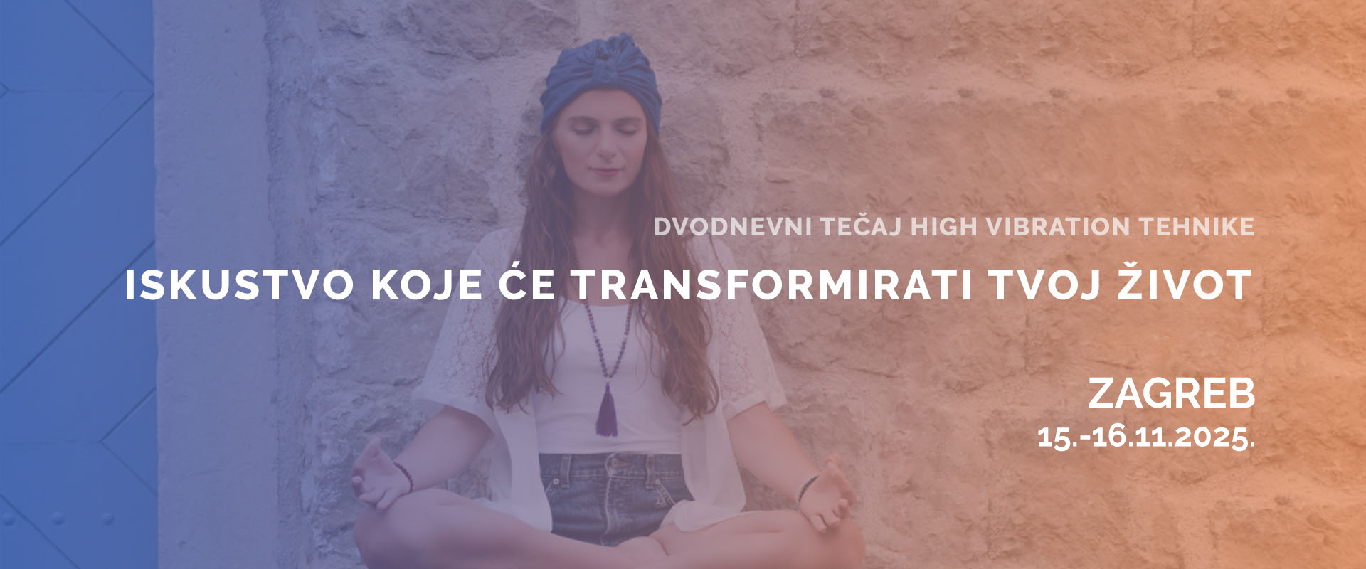 Ne želiš biti dio statistike ljudi kojima stres upravlja životom? Želiš se opustiti, bolje upoznati sebe, otvoriti svoj mentalni potencijal? Znaš da možeš imati i postizati više nego sada? High vibration je dvodnevni tečaj na kojem ćeš dobiti tehnike – disanje, meditaciju i vizualizaciju koje možeš prakticirati samostalno. Jednom kada dobiješ cijeli program imaš u rukama alat za poboljšanje ostatka života.
